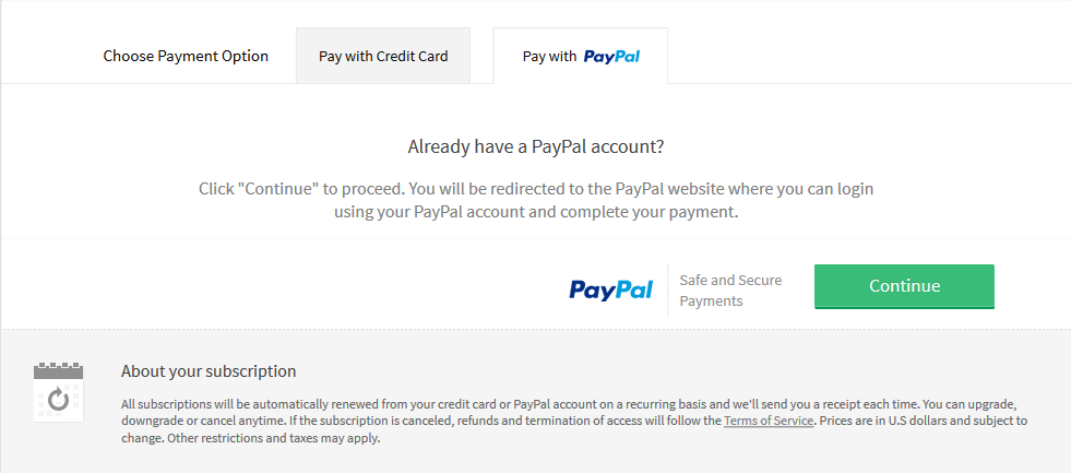 At any point during your subscription cycle, you can move from an offline PO transaction to an online subscription mode like credit card or PayPal.