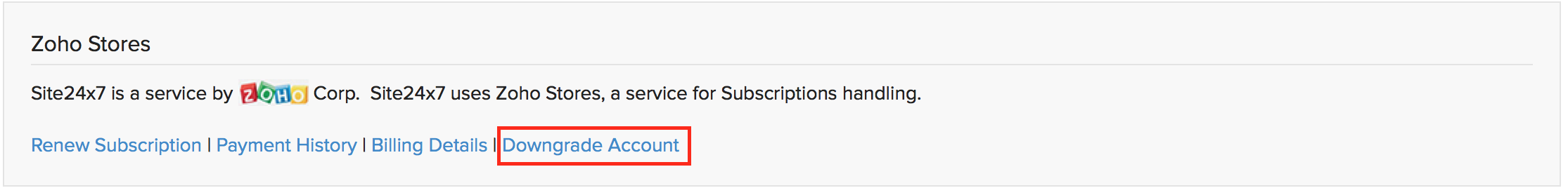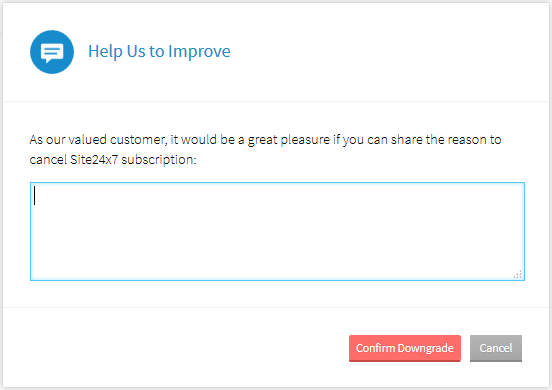 - Click the "downgrade to FREE plan" link given at the bottom of the Site24x7 subscription plan page.