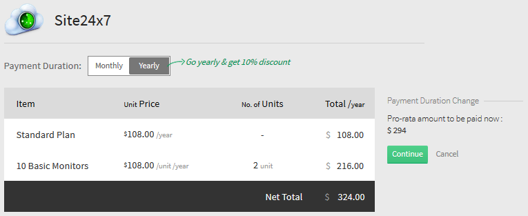 Follow below steps to upgrade to paid Site24x7 subscription: