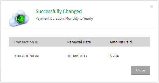 - A confirmation message about the modified monthly to yearly plan is displayed.